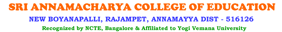 Welcome to the SRI ANNAMACHARYA COLLEGE OF EDUCATION College website. It has been designed to provide you with essential information about the College and the professional preparation process. It has been one of my most cherished dreams which is now on its threshold of completion. We have a solemn commitment to address vigorously to the needs arising from a rapidly changing society by aligning ourselves to the requirement of a new age of teaching. Maintaining quality in its offering is fundamental to our reputation.